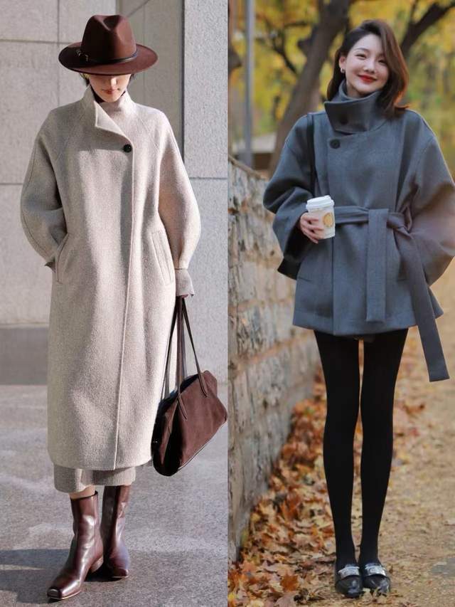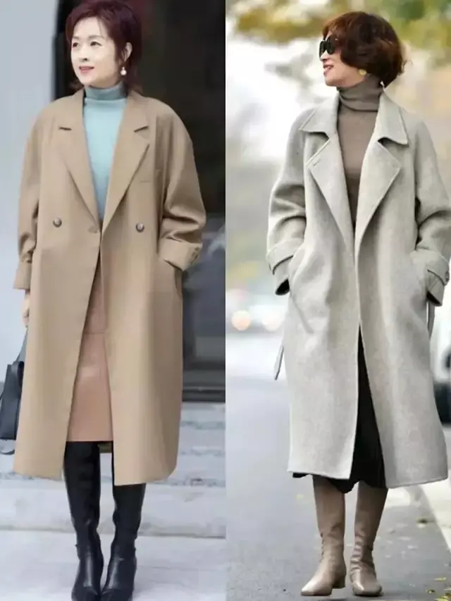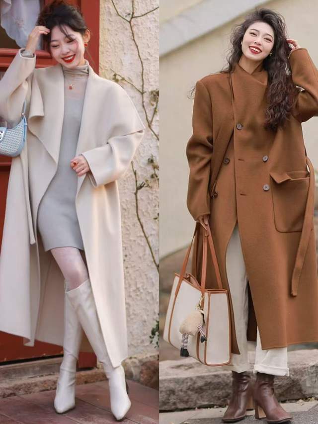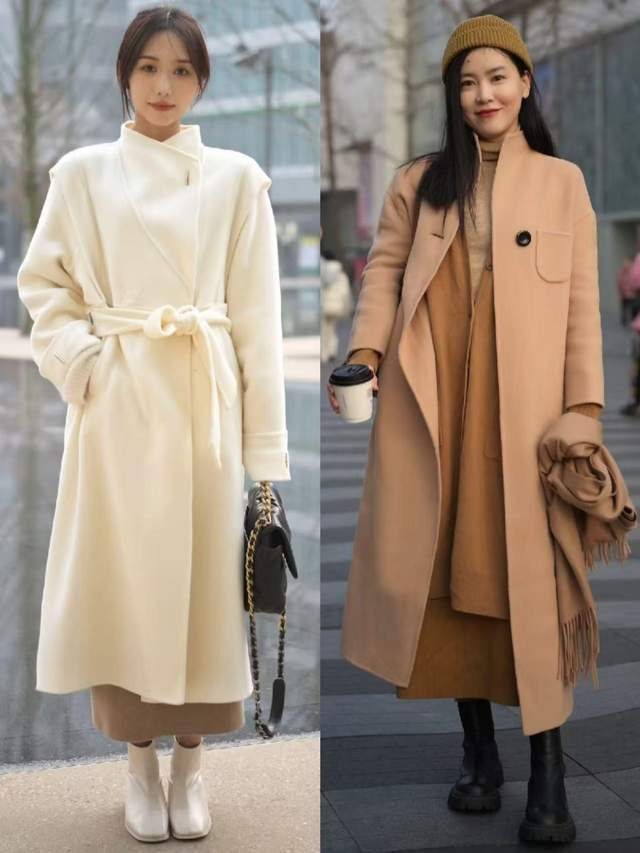 宽广素东说念主更推选遴聘上图左边这一套穿搭,用燕麦色的长款大衣内搭同色系的真挚裙,脚穿比拟有质感的棕色短靴,就能无缺的修饰你的身体,同期又不失腾贵感平和质感。