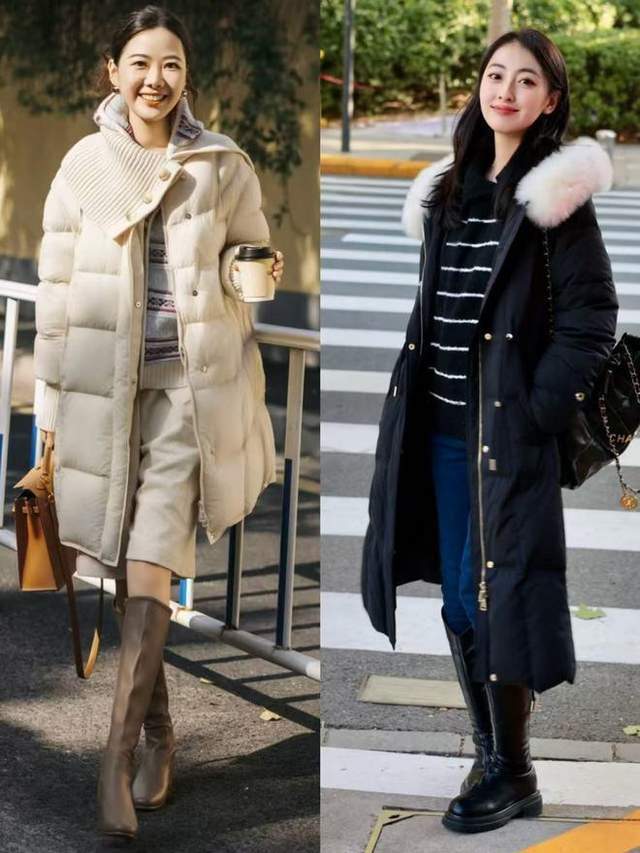 清凉的冬天,羽绒服上身之后能一忽儿让你感受到顺心,穿长款的羽绒服,我们内搭不错用一条直筒半身裙,脚穿一对中筒靴就够了,既御寒又优雅。