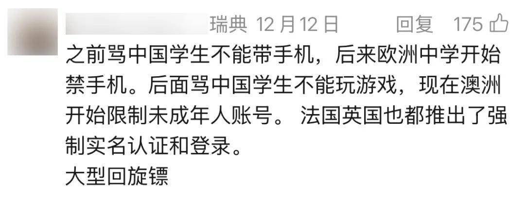 像咱们开头提到的著述所说,本月初,澳大利亚成为了天下上第一个严格立法间隔16岁以下未成年东说念主使用外交媒体的国度。而英国、法国、丹麦、挪威等国的携带东说念主都暗意了支抓,印尼、新西兰等国接踵连络年事考据工夫,马来西亚更是通知计较在来岁颁布访佛的禁令。